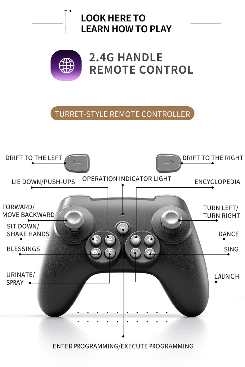 • -It can go Forward, backward, pee, auto-act, coquetry, dance. All of actions can be controlled by controller.